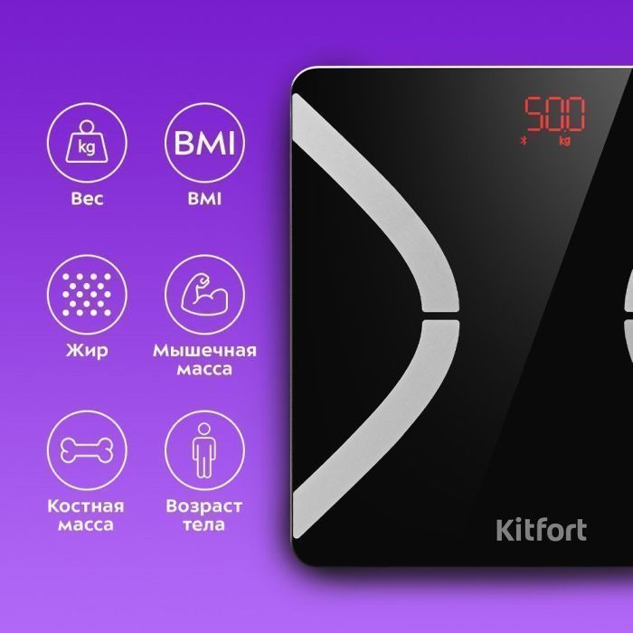 Весы КТ-837 представляют современное поколение «умных» весов, поскольку выводят на дисплей параметры биоимпедансного анализа. Электронные напольные весы обеспечивают высокую точность измерения, что очень важно людям, следящим за своим весом. Минимальный вес 0,2 кг. Максимальный вес