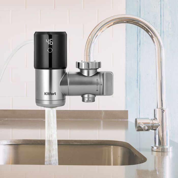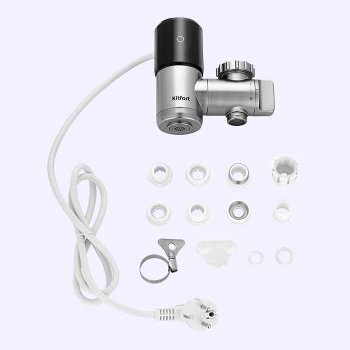 Водонагреватель отличается лёгкостью монтажа: закрепите устройство на вашем смесителе вместо аэратора. В комплекте поставляются муфты для смесителей разного диаметра: от 20 до 24 мм.